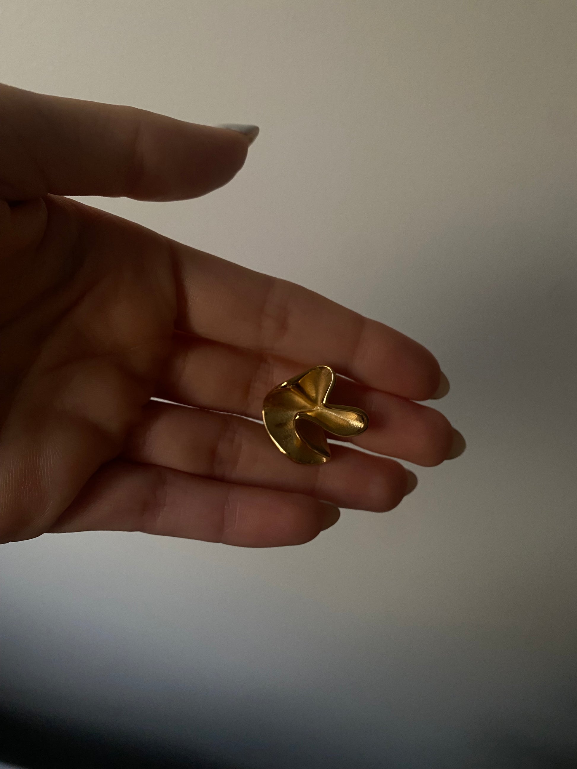 Conjunto anel e brincos Loureiro, em aço inoxidável.