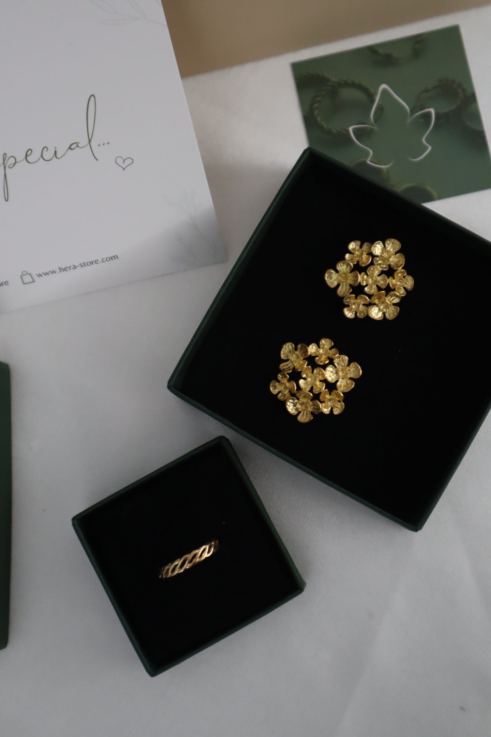 Combinámos os brincos Calathea com o anel Delfina, um conjunto irreverente e sofisticado.